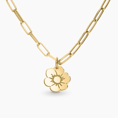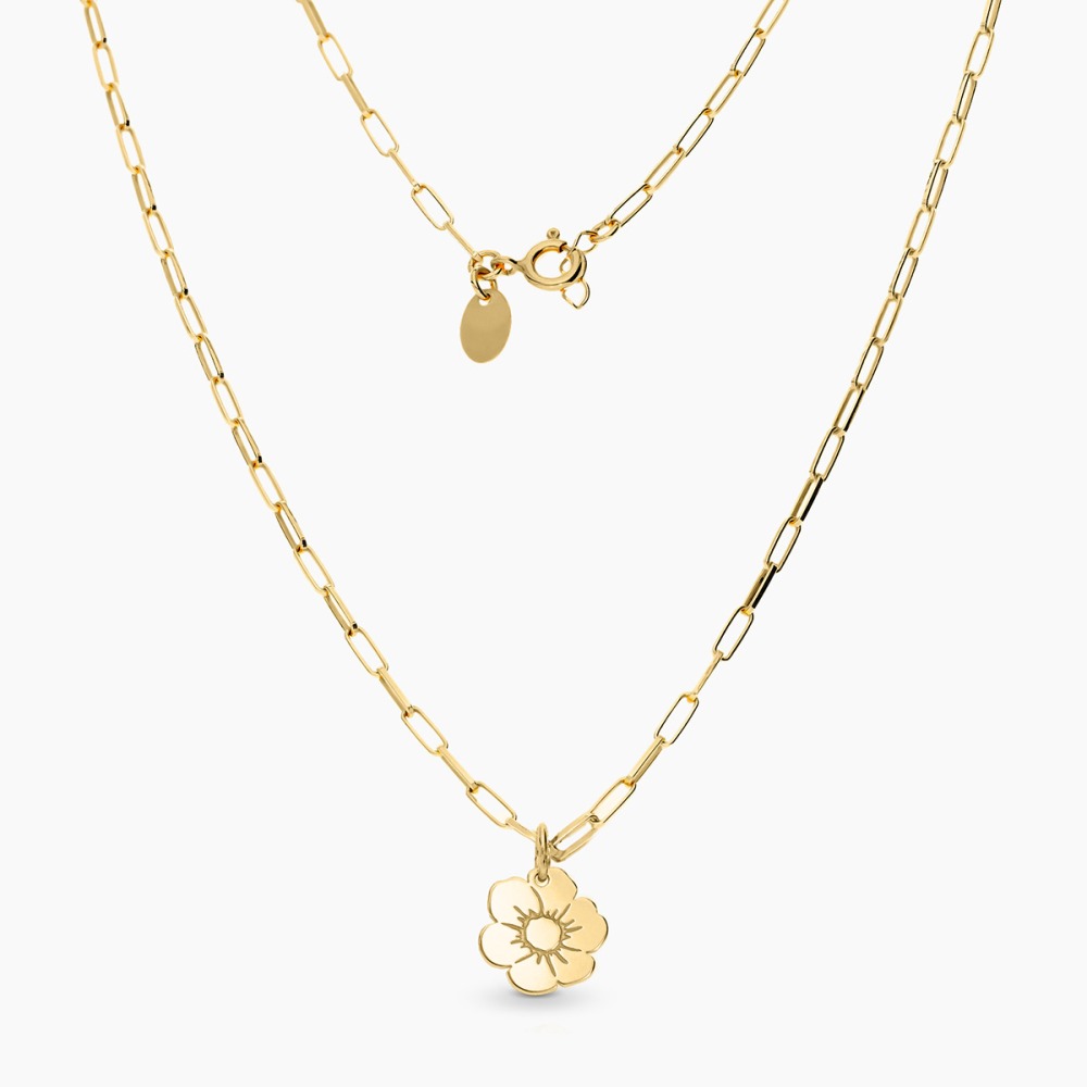 Wyjątkowy, naszyjnik wykonany ręcznie w pracowni A&A ze srebra pozłacanego 24 karatowym złotem. Jego największym atutem jest misternie wykonana zawieszka w kształcie kwiatu i łańcuszek o modnym splocie: ankier. Subtelna, kobieca kompozycja inspirowana naturą przyciąga wzrok blaskiem ciepłego odcienia kruszcu.