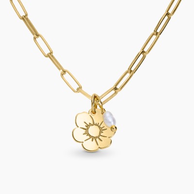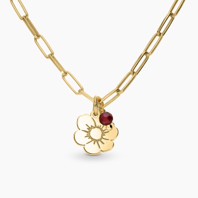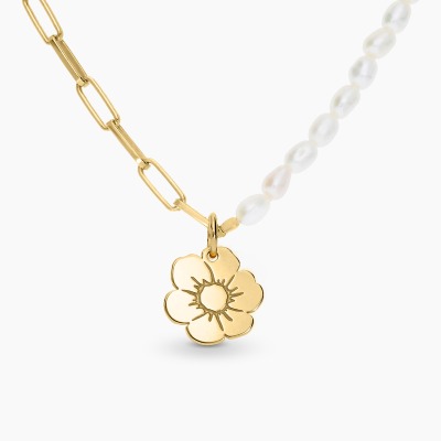 Naszyjnik Flower Garden srebrny pozłacany splot ankier z kwiatem