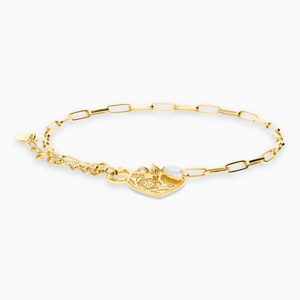 Bransoletka Flower Garden srebrna pozłacana ankier z sercem i perłą