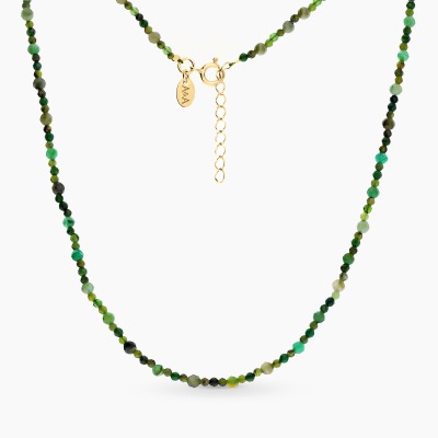 Nowoczesny, wykonany ręcznie w pracowni A&A naszyjnik ze srebra pozłacanego 24 karatowym złotem i turmalinów. Jego największym atutem jest misternie wykonana zawieszka w kształcie kolibra i naturalne kamienie o pięknej, zielonej barwie. Subtelna, kobieca kompozycja inspirowana naturą przyciąga wzrok blaskiem ciepłego odcienia kruszcu.