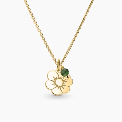 Naszyjnik Flower Garden srebrny pozłacany z koniczyną i turmalinem