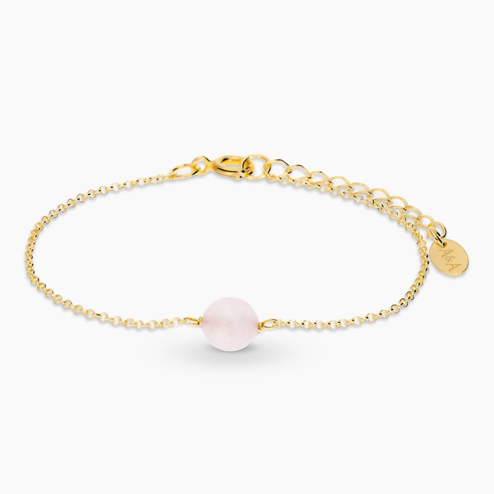 Wyjątkowa bransoletka wykonana ręcznie w pracowni A&A ze srebra pozłacanego 24 karatowym złotem. Jej największym atutem jest delikatny splot łańcuszka: rolo i okrągły naturalny kwarc o pięknej, różowej barwie. Wspaniale wygląda noszona samodzielnie jak i w różnych kompozycjach. Niebanalna, kobieca biżuteria z kolekcji Sphere to esencja nowoczesnego minimalizmu, która przenosi nas w sferę czystych form i subtelnego piękna.