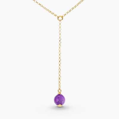 Nowoczesny, wykonany ręcznie w pracowni A&A naszyjnik ze srebra pozłacanego 24 karatowym złotem. Jego największym atutem jest delikatny splot łańcuszka: rolo oraz naturalny ametyst, który pięknie komponuje się z kuleczką o ciepłej barwie. Wspaniale wygląda noszony samodzielnie jak i w różnych kompozycjach. Niebanalna, kobieca biżuteria z kolekcji Sphere to esencja nowoczesnego minimalizmu, która przenosi nas w sferę czystych form i subtelnego piękna.