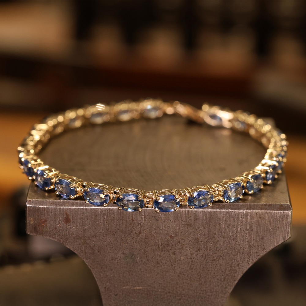 Bransoletka Livorno z żółtego złota 585 z owalnymi szafirami 13,22 ct