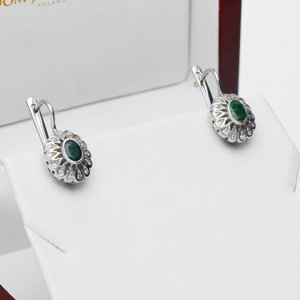 Kolczyki z białego złota 585 ze szmaragdami 0,67 ct i brylantami 0,18 ct Si/H
