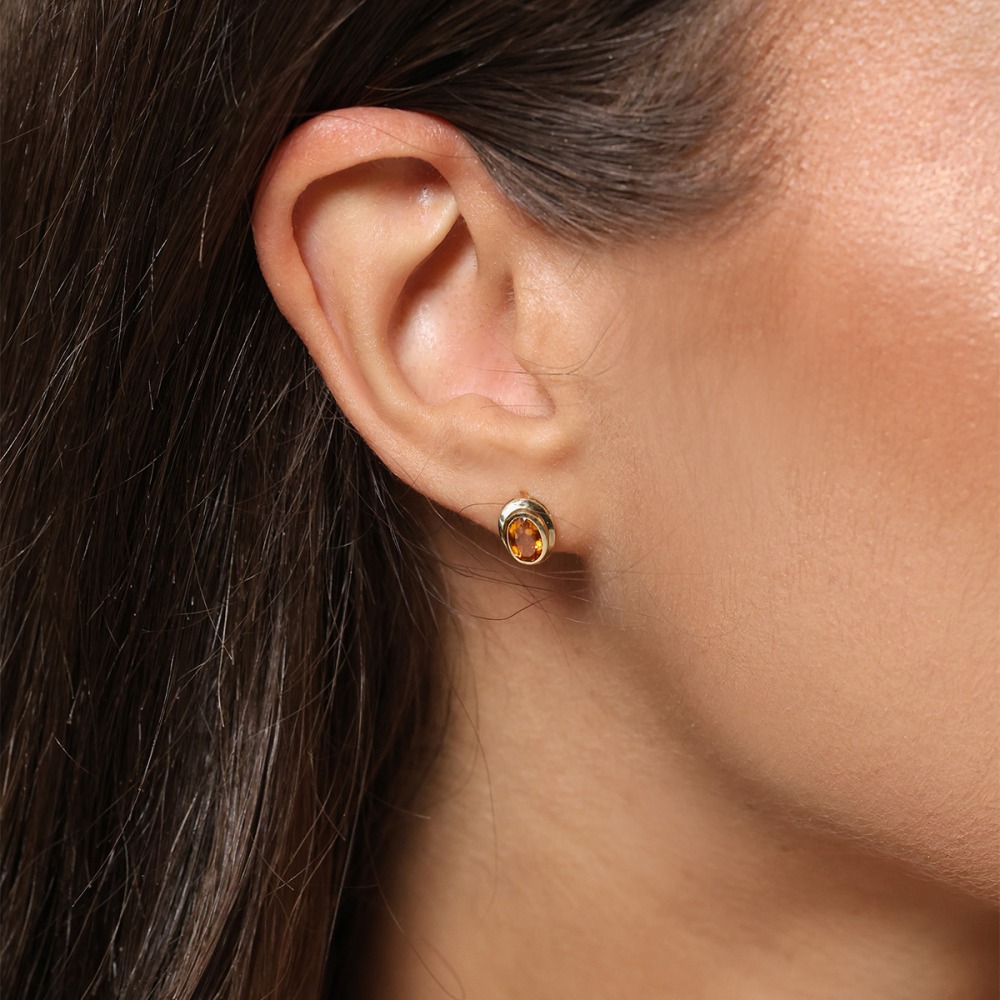 Wyjątkowe kolczyki wykonane z żółtego złota próby 0,585 z gładką koroną w której z doskonałą precyzją zostały zakute owalne cytryny o masie 0,87 ct. Kolczyki zachwyca piękną, klasyczną formą oraz niepowtarzalnym blaskiem drogocennego kruszcu. Subtelna i pełna wdzięku kompozycja dedykowana dla pań lubiących otaczać się eleganckimi dodatkami.