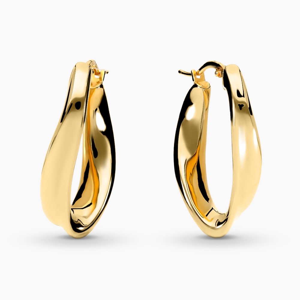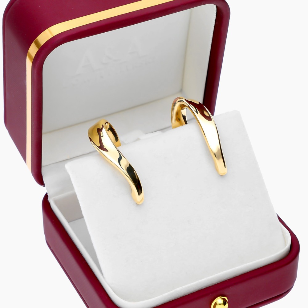 Nowoczesne kolczyki w formie elipsy wykonane z żółtego złota próby 0,585. Dzięki wygodnemu zapięciu są niezwykle wygodne w noszeniu. Przyciągają wzrok piękną, ciepłą barwą kruszcu oraz swoją geometryczną formą. Stanowią doskonały dodatek do codziennych stylizacji, a także sprawdzą się na wyjątkowe okazje.