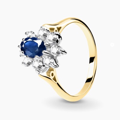 Pierścionek zaręczynowy Venezia z dwukolorowego złota 585 z szafirem kaboszon i brylantami