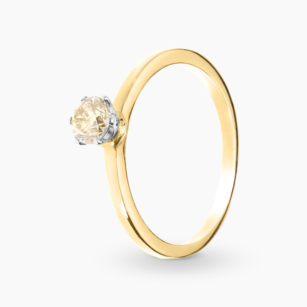 Klasyczny pierścionek złoty 0,585 z szampańskim brylantem 0,42 ct