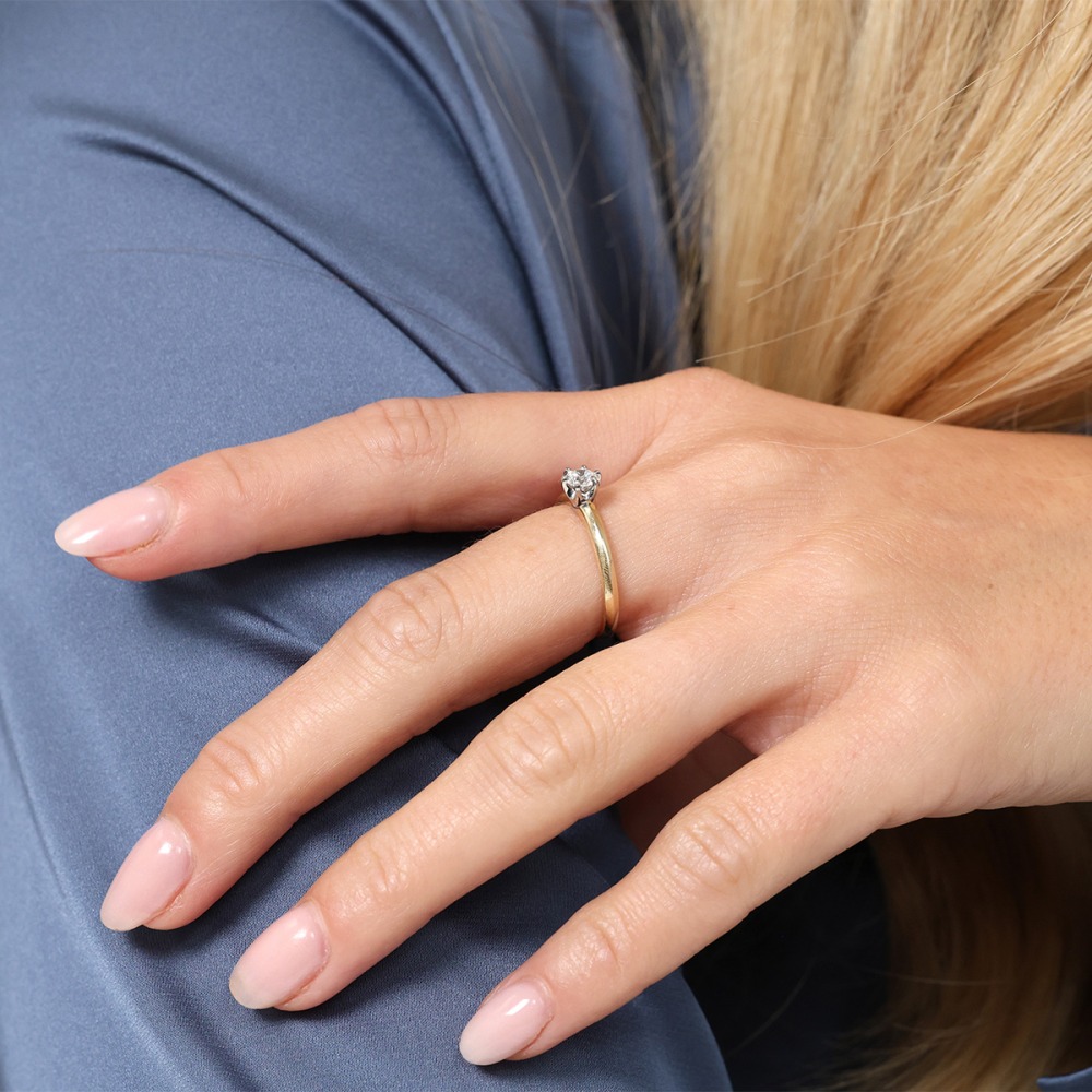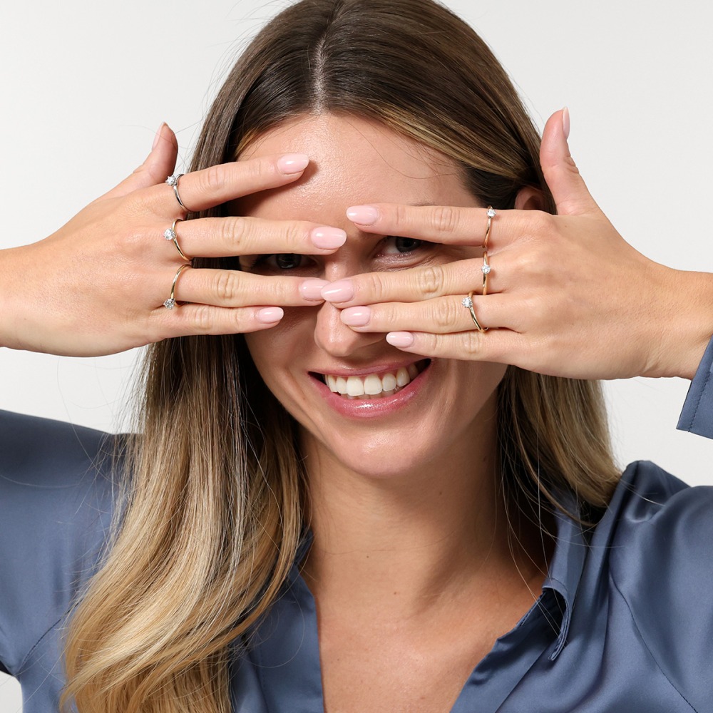 Najczęściej wybierany rozmiar pierścionka zaręczynowego to między 12 do 14. Jeśli nie masz możliwości, by zmierzyć rozmiar palca lub inny pierścionek ukochanej, możesz postawić na bardziej uniwersalny, a w razie potrzeby dokonać korekty.