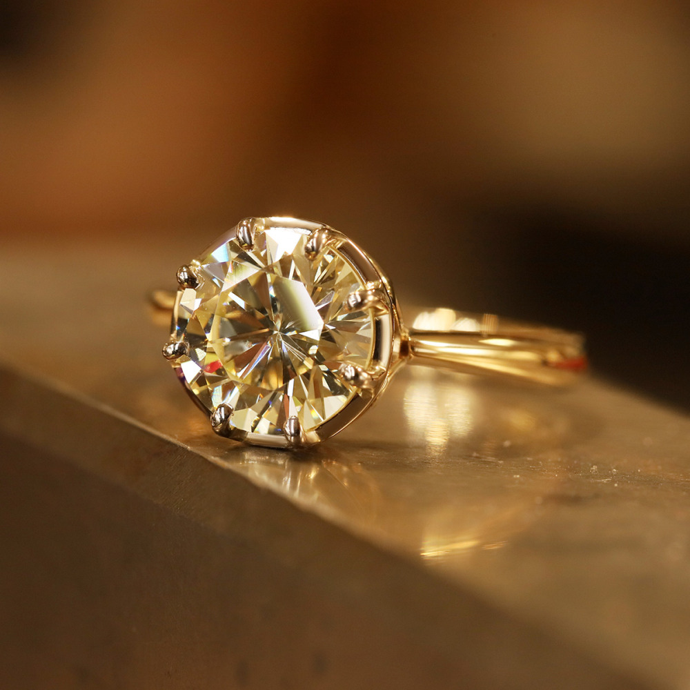Pierścionek ręcznie wykonany z dwukolorowego złota 585 z okazałym brylantem 3,13 ct