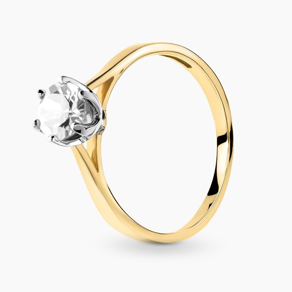 Pierścionek zaręczynowy Vicenza dwukolorowe złoto 585 z białym szafirem 0,80 ct