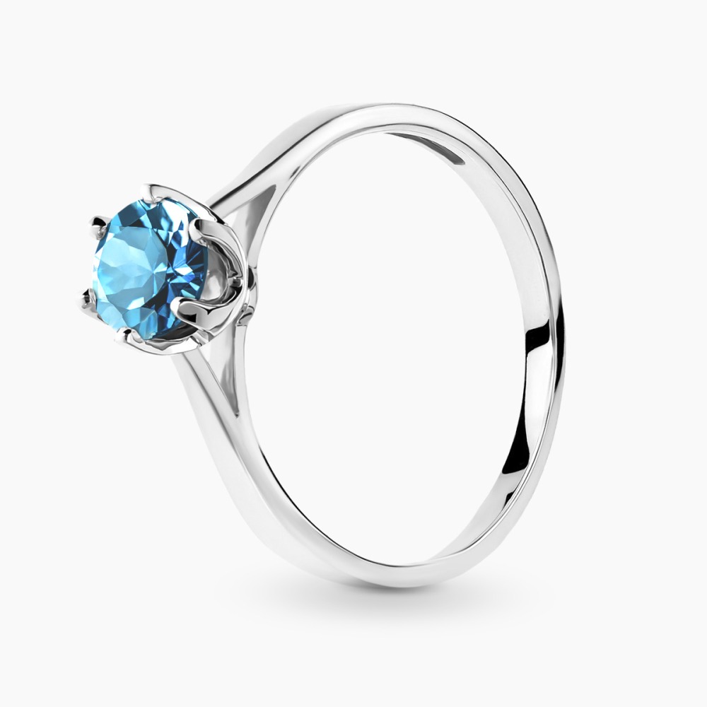 Pierścionek zaręczynowy Vicenza białe złoto 585 z topazem London Blue 0,90 ct