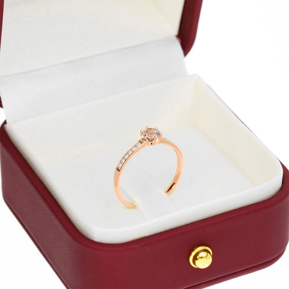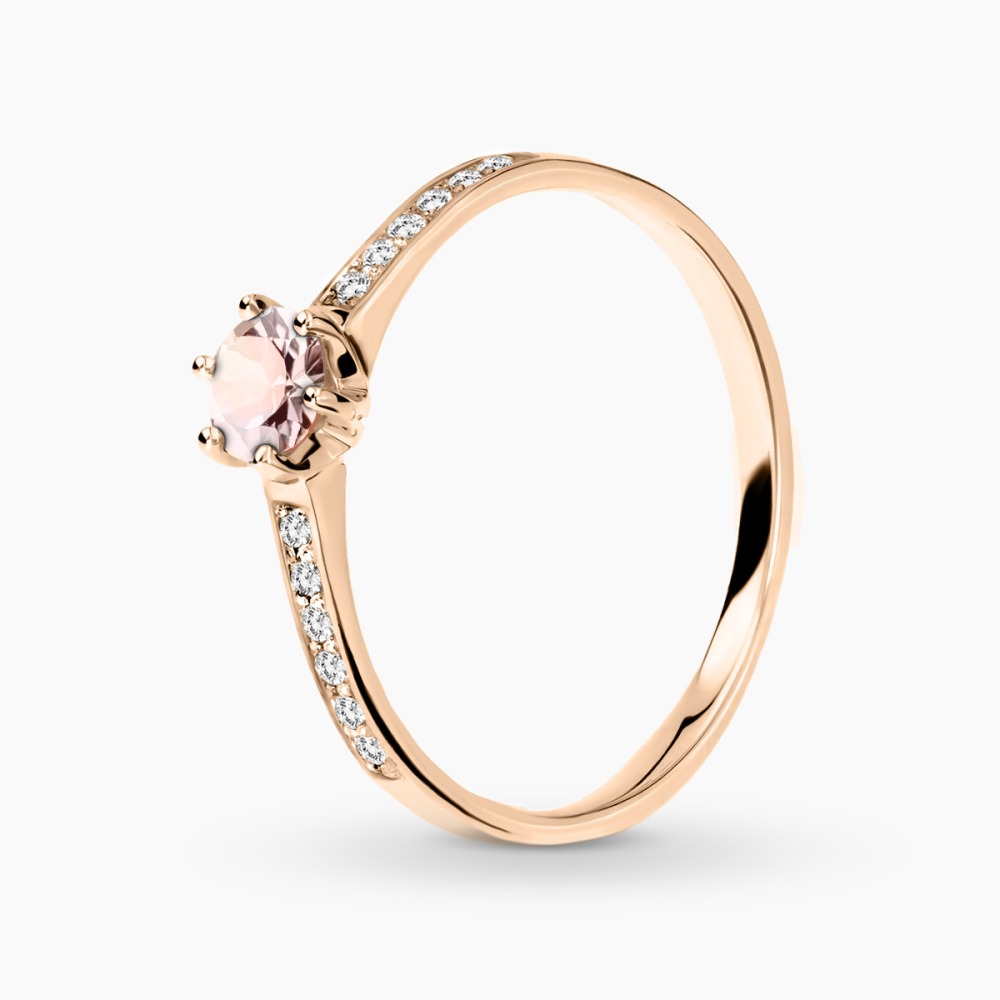 Pierścionek zaręczynowy Ravenna różowe złoto 585 z brylantami 0,10 ct i morganitem 0,30 ct