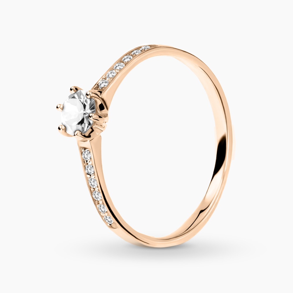 Pierścionek zaręczynowy Ravenna różowe złoto 585 z brylantami 0,10 ct i białym topazem 0,40 ct
