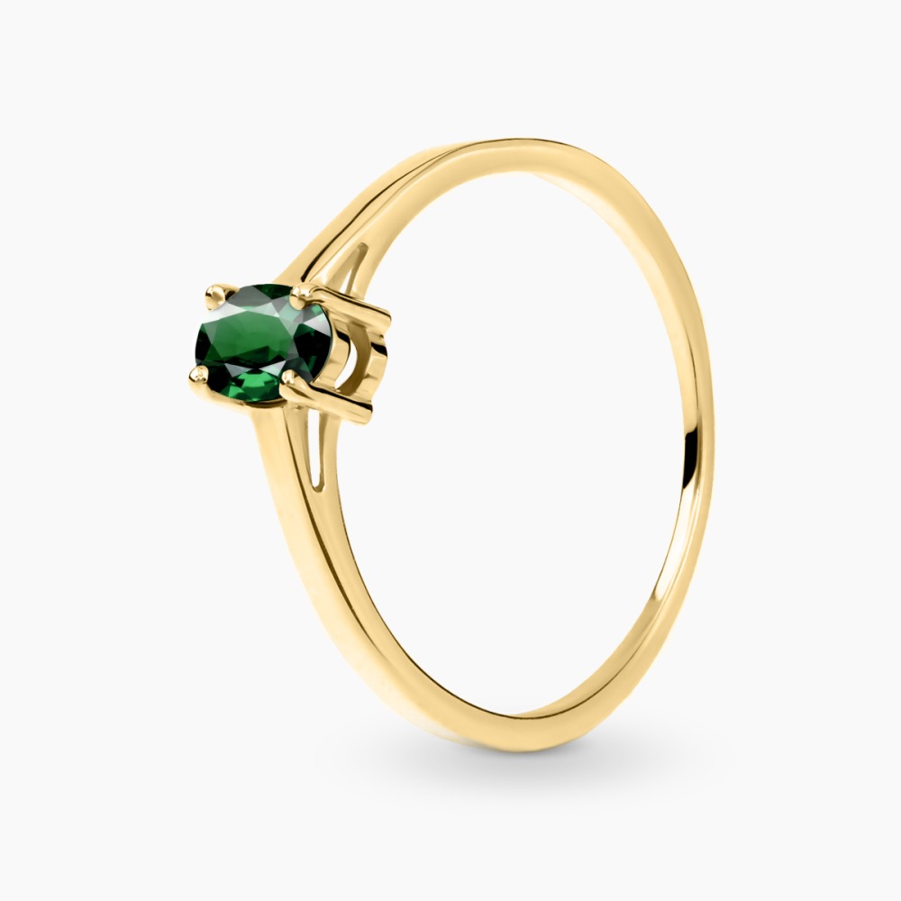 Pierścionek zaręczynowy Livorno żółte złoto 585 z zielonym turmalinem 0,46 ct