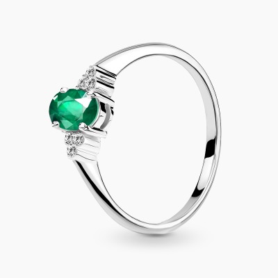 Pierścionek zaręczynowy Perugia białe złoto 585 z oliwinem i brylantami 0,05 ct