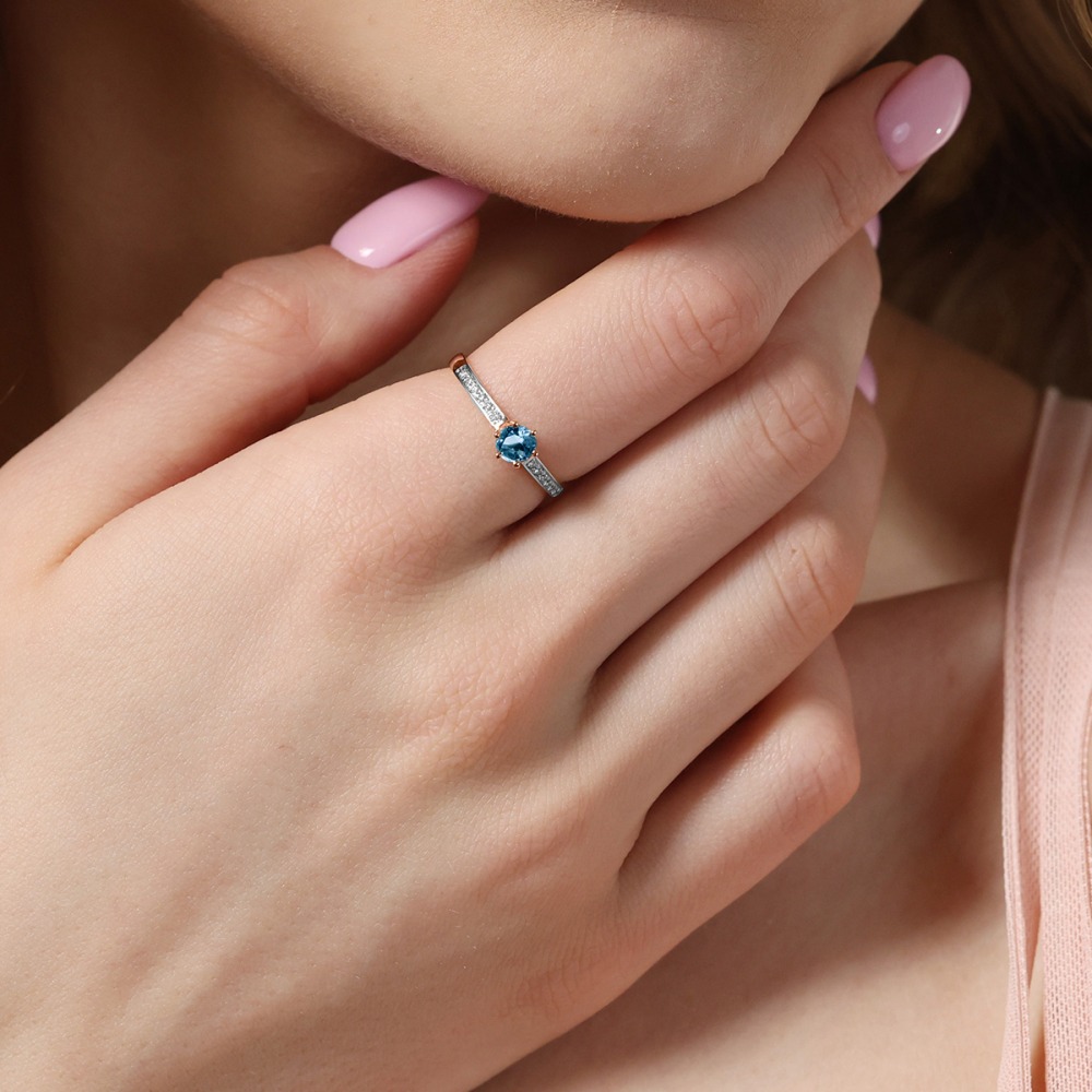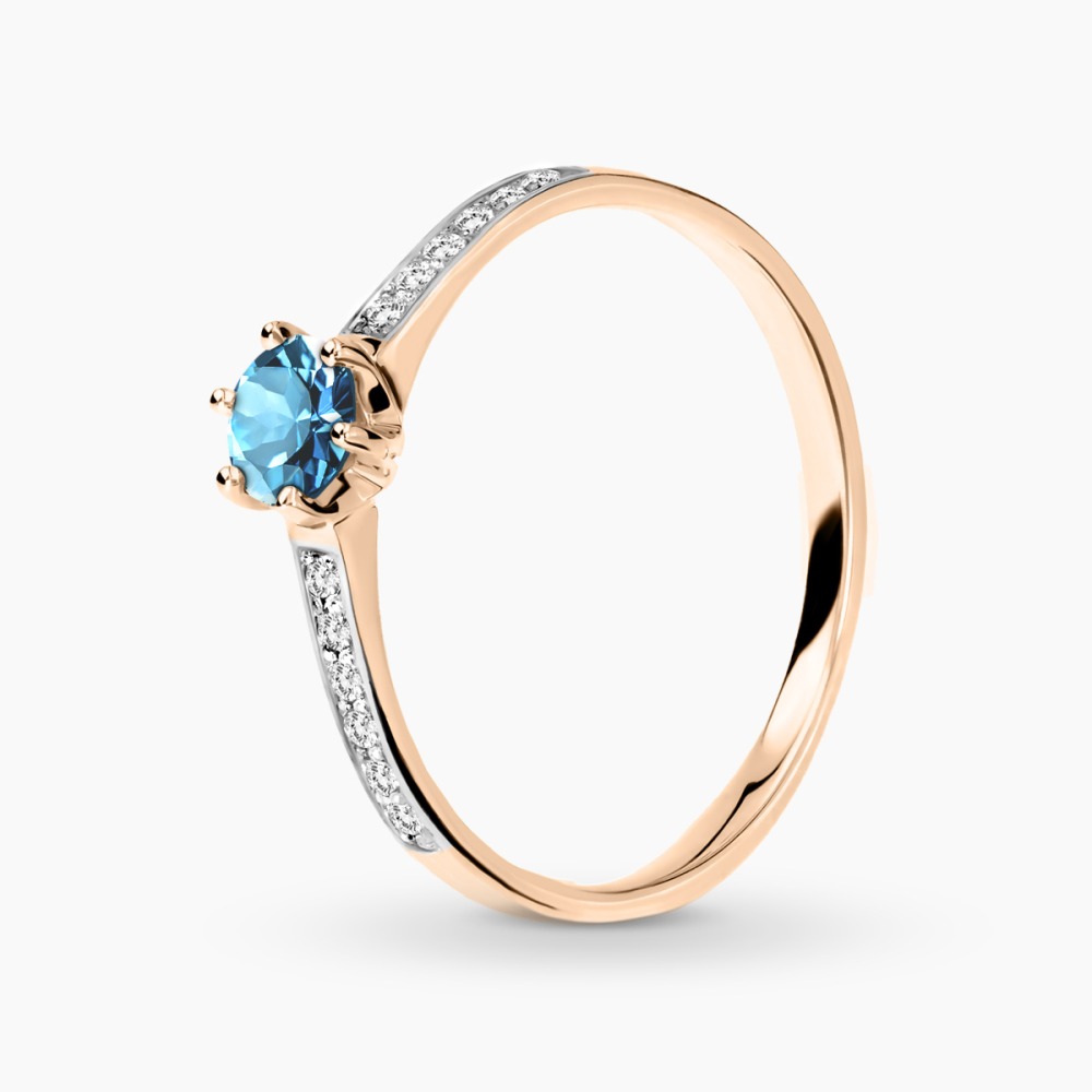 Pierścionek zaręczynowy Ravenna różowe i białe złoto 585 z brylantami 0,10 ct i topazem London blue 0,45 ct