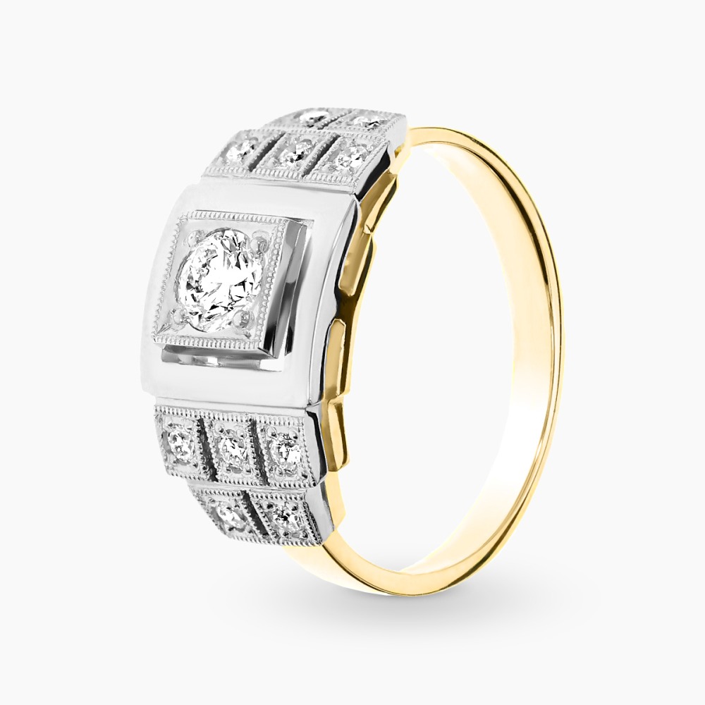 Pierścionek z dwukolorowego złota 585 w stylu Art Déco z brylantami 0,51 ct