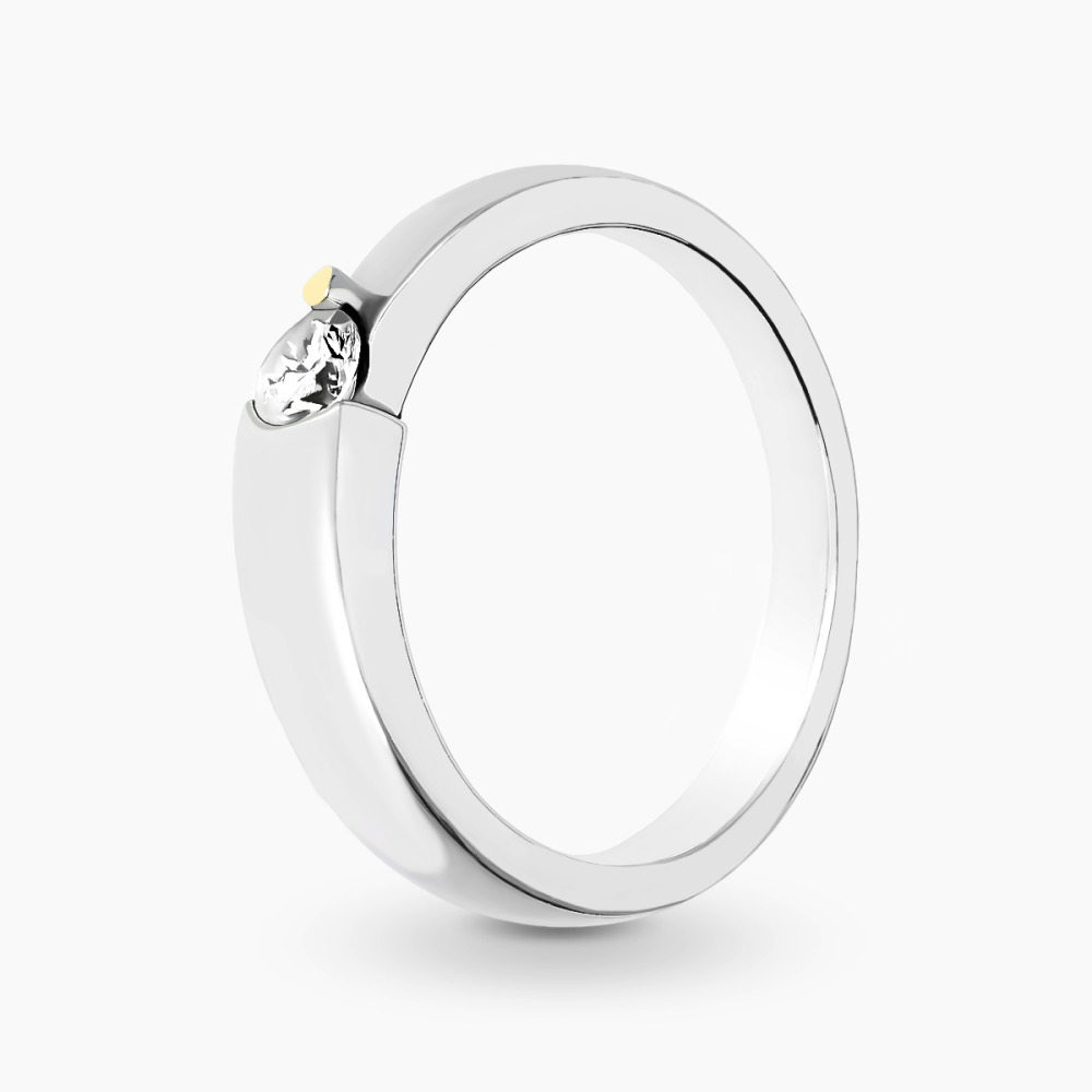 Zachwycający pierścionek wykonany z precyzją z białego złota próby 0,585. Wyróżnia się nowoczesną kompozycją i niebanalnym wzorem. Centralnie oprawiony brylant o masie 0,25 ct przyciąga wzrok swoim ponadczasowym blaskiem, pięknie podkreślając zimny odcień złota. Pierścionek idealny dla kobiet podążających za modą, które cenią subtelną i elegancką biżuterię.