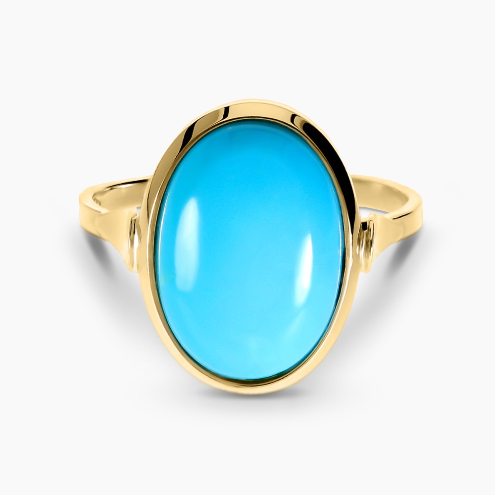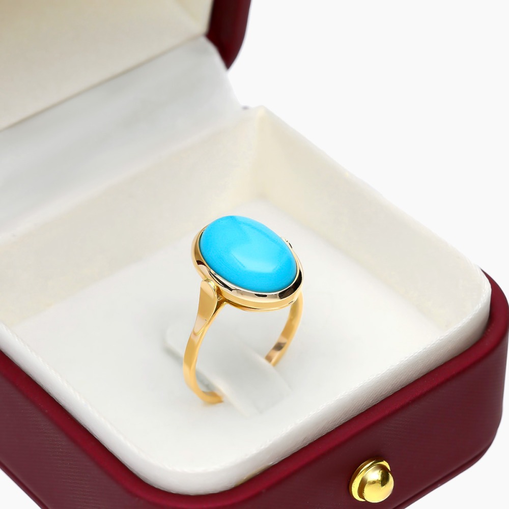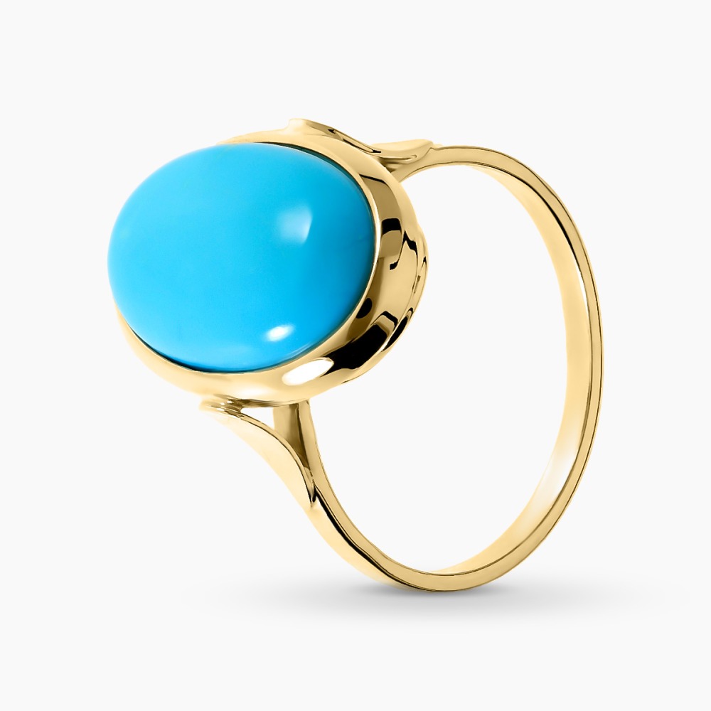 Pierścionek z żółtego złota 585 z okazałym turkusem