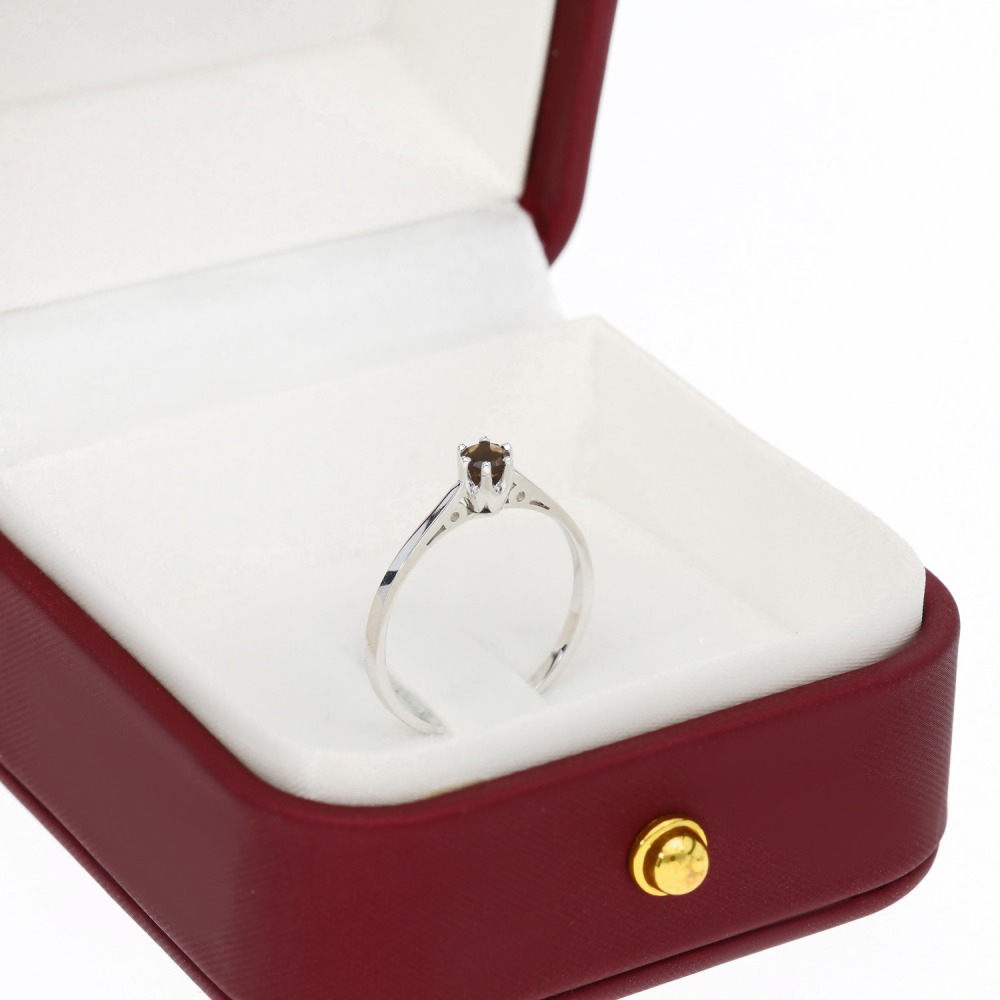 Pierścionek zaręczynowy Siena białe złoto 585 z kwarcem dymnym 0,16 ct