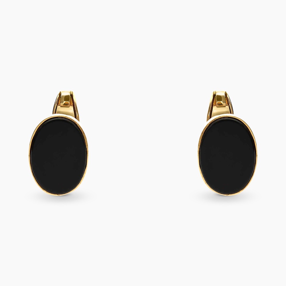 Spinki do mankietów wykonane z żółtego złota próby 0,585 o owalnym kształcie. Centralny akcent stanowią onyksy, których intensywna, głęboka barwa pięknie współgra z ciepłym odcieniem złota. Dyskretny, a zarazem elegancki detal, który doda charakteru każdej koszuli i sprawdzi się jako stylowy element klasycznej garderoby.