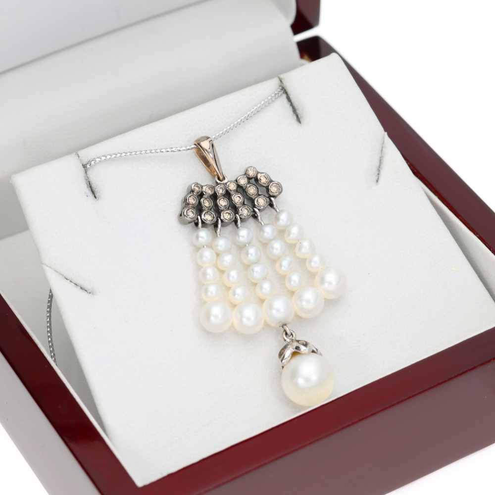 Zawieszka z białego złota 750 z perłami hodowanymi i diamentami 0,37 ct Si/K