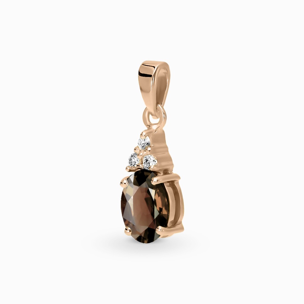 Zawieszka Perugia różowe złoto 585 z kwarcem dymnym i brylantami 0,04 ct